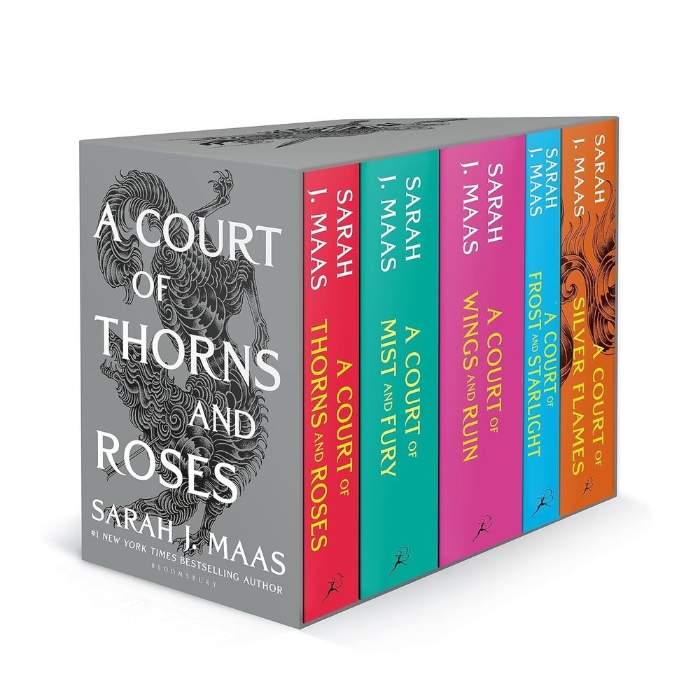 This stunning five-book box set of the 1 New York Times bestselling series by Sarah J. Maas includes A Court of Thorns and Roses, A Court of Mist and Fury, A Court of Wings and Ruin, A Court of Frost and Starlight, and A Court of Silver Flames.