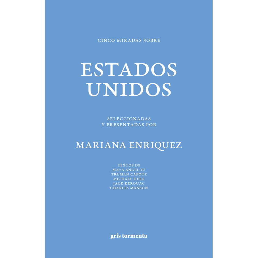 ¿En qué piensa Mariana Enriquez cuando piensa en Estados Unidos? Gris Tormenta le pregunta y ella responde con este libro: una selección de textos de la literatura estadounidense para dibujar, más que un país, un estado mental.
