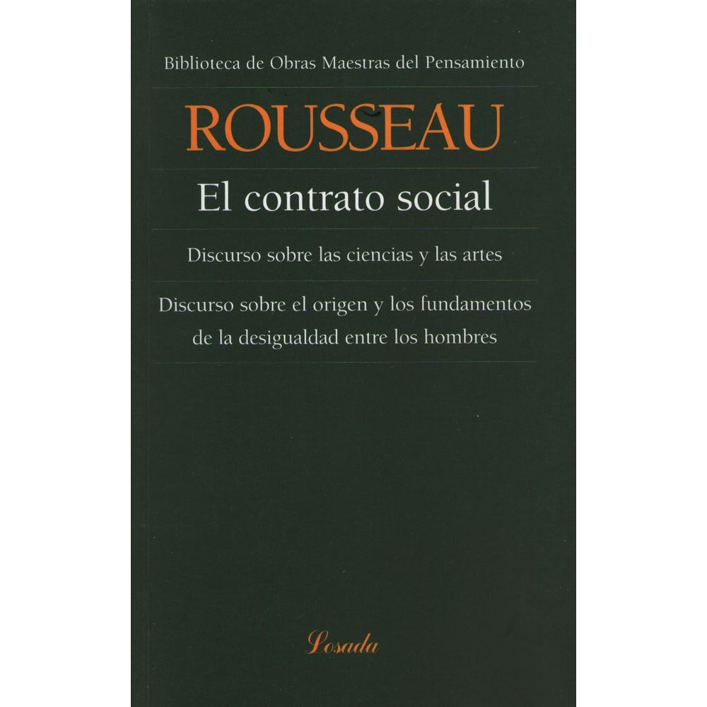 Este volumen acerca al lector dos importantes Discursos roussonianos que prefiguran El contrato social publicado en 1761 : Sobre las ciencias y las artes 1750 y Sobre el origen y los fundamentos de la desigualdad entre los hombres 1755 .