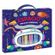 Esta colección de libros para colorear viene dentro de una valija llena de sorpresas. Tiene cuatro títulos: granja, selva, vida marina y espacio.
