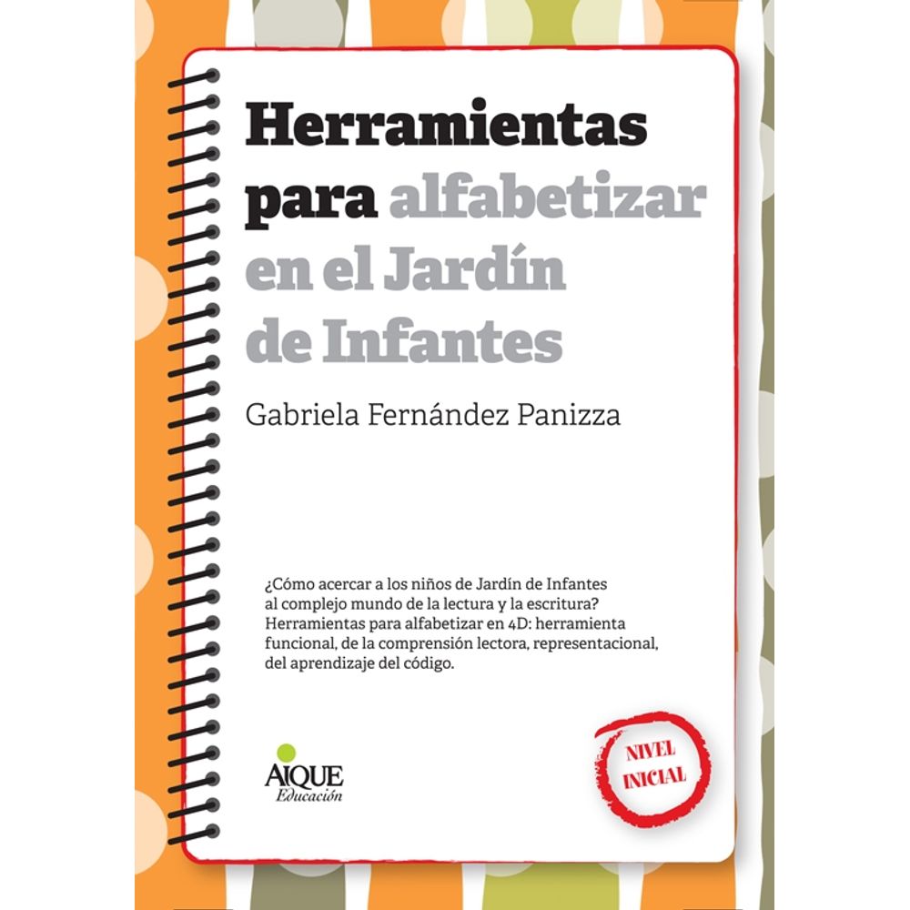 | Sinopsis | ¿Cómo acercar a los niños de Jardín de Infantes al complejo mundo de la lectura y la escritura? Herramientas para alfabetizar en 4D: herramienta funcional, del comprensión lectora, representacional, del aprendizaje del código. |