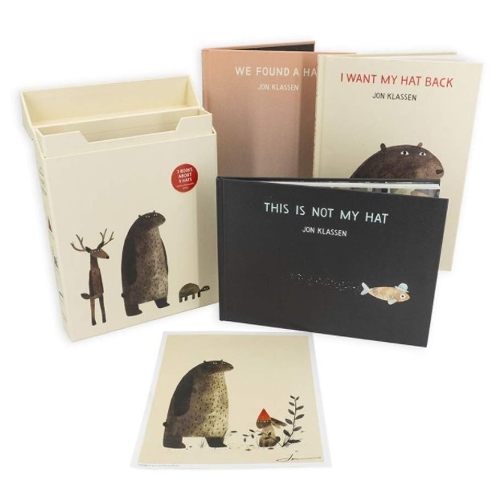 SinopsisHold on to all of your hats at once for this special collection of Jon Klassen's celebrated hat trilogy. The bear's hat is gone, and he wants it back. A fish has stolen a hat; will he get away with it? Two turtles have found one hat, but the hat looks good on both of them. . . . Jon Klassen's deliciously deadpan hat tales continue to surprise and delight readers of all ages, and they are all now available in one impeccably designed boxed set along with a free frameable print. Included are: