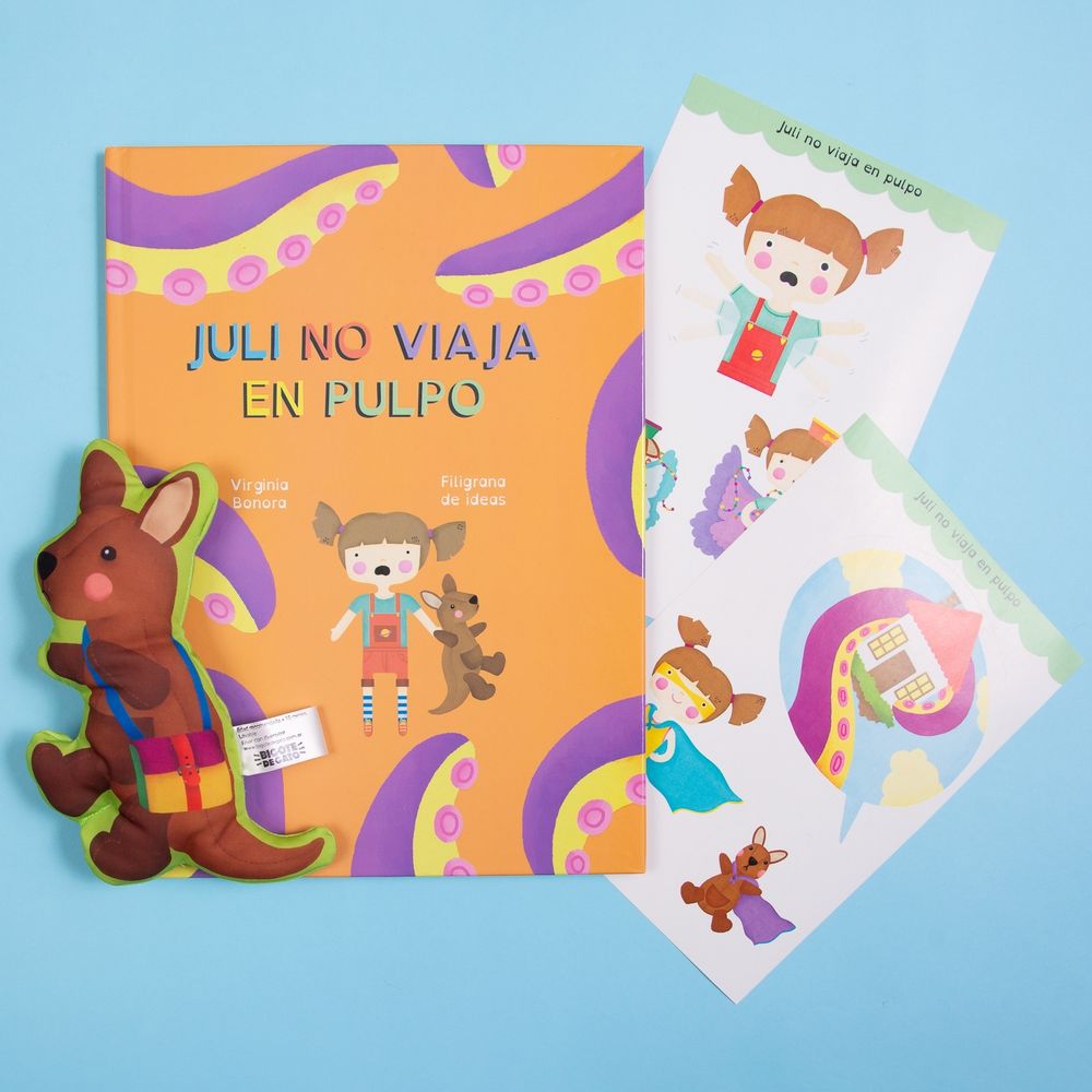 JULI NO VIAJA EN PULPO LIBRO + MUÑECO CANGURO + STICKERS - B