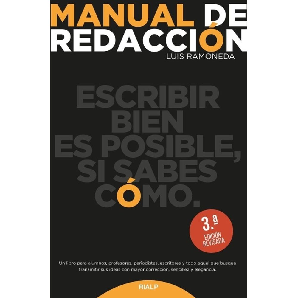 Escribir con claridad, corrección y sencillez es una habilidad alcanzable. Requiere conocimientos de gramática y ortografía, actualizados con las nuevas normas sobre el uso el castellano. Pero la verdadera destreza se alcanza mediante la lectura y el empeño por transmitir todo lo que se desea, tal como se desea. El lector encontrará en este Manual de redacción un instrumento indispensable para recorrer ese itinerario con éxito.