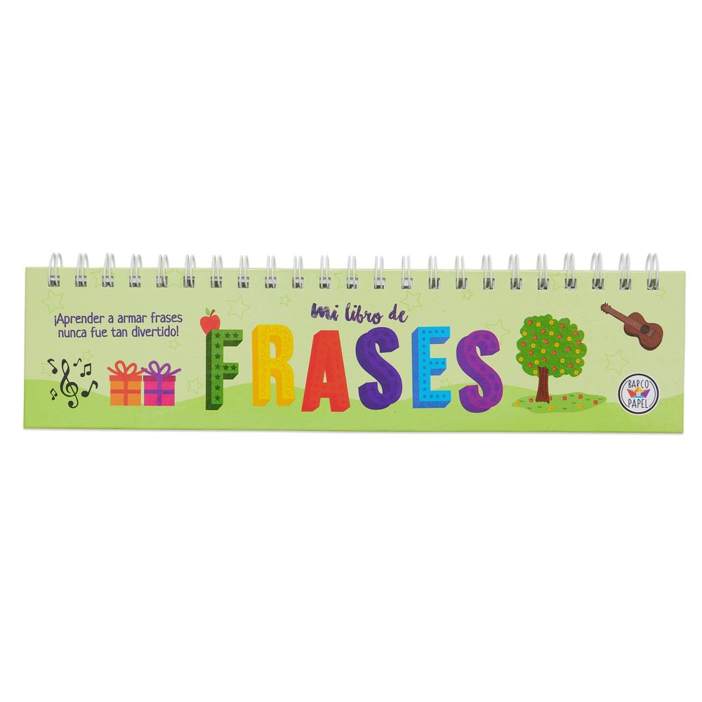 Mi libro móvil de frases es una excelente herramienta que ayuda a lxs niñxs a combinar distintas palabras para formar una frase. Con este libro lxs chicxs aprenden las partes que componen una oración y se divierten buscando distintos significados con las combinaciones. Tapa dura de cartón montado, anillado reforzado y hojas laqueadas para su mayor resistencia y duración. Medidas: 8cm de alto x 30 cm de ancho. Cantidad de hojas: 20