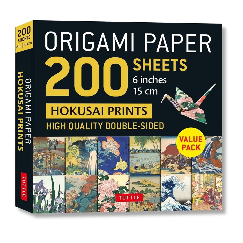 This paper pack contains 200 high-quality, 6-inch origami sheets printed with colorful Woodblock Prints by Hokusai.