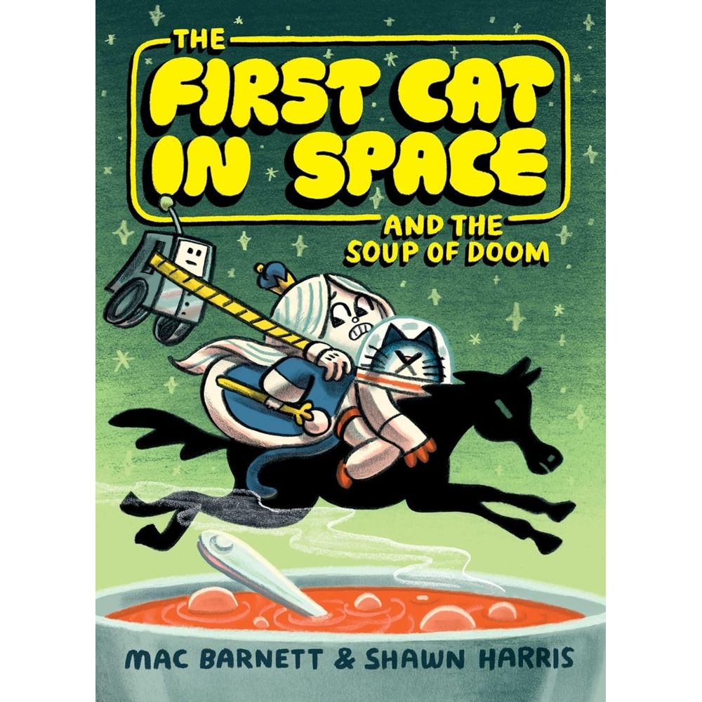 Award-winning creators Mac Barnett and Shawn Harris are back with the second volume in the bestselling The First Cat in Space graphic novel series! Secret tales of woe, hilarious new characters, and dangerous plans of sabotage will keep readers delighted and laughing until the thrilling climax. Perfect for fans of Dog Man and InvestiGators.