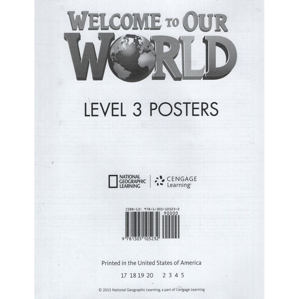 SinopsisWelcome to Our World is a three-level pre-primary series that use traditional children's songs from around the world, with National Geographic photos and content, to introduce very young learners to the world of English.